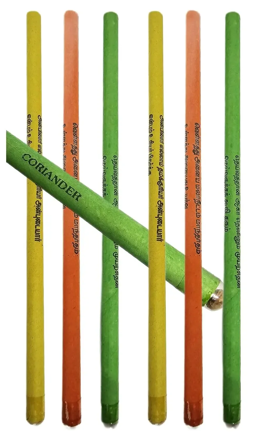 Each pencil features laser-engraved Thirukkural verses providing timeless wisdom on ethics and personal conduct. Made from 100% recycled paper with high-quality seeds embedded at the end. When your pencil becomes too short to use, plant it and watch it grow into herbs, flowers, or vegetables. From Use & Throw to Use & Grow!