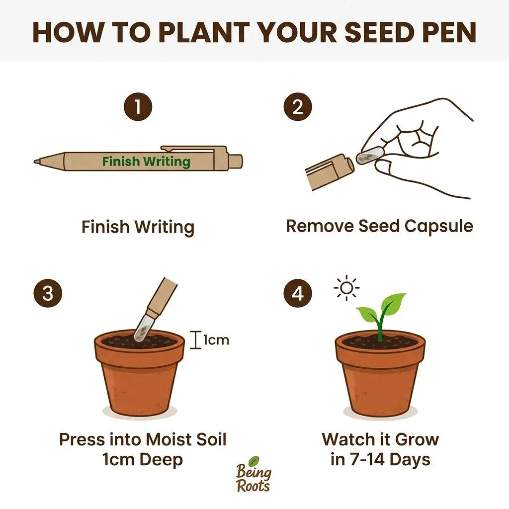 Plantable Seed Pen | Eco-Friendly Biodegradable Paper Pens | Zero Waste Stationery
