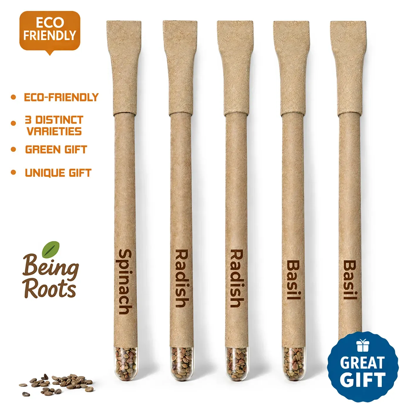 Experience the future of sustainable stationery with our plantable seed pens. Featuring 90% less plastic than regular pens, each pen contains government-approved seeds in a water-soluble capsule. When the pen is used up, plant it and nurture fresh herbs or vegetables! Perfect for corporate gifting, bulk orders, and eco-conscious individuals.