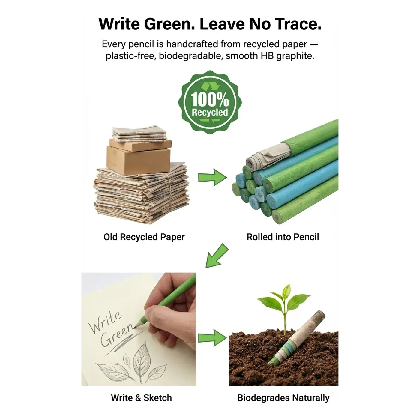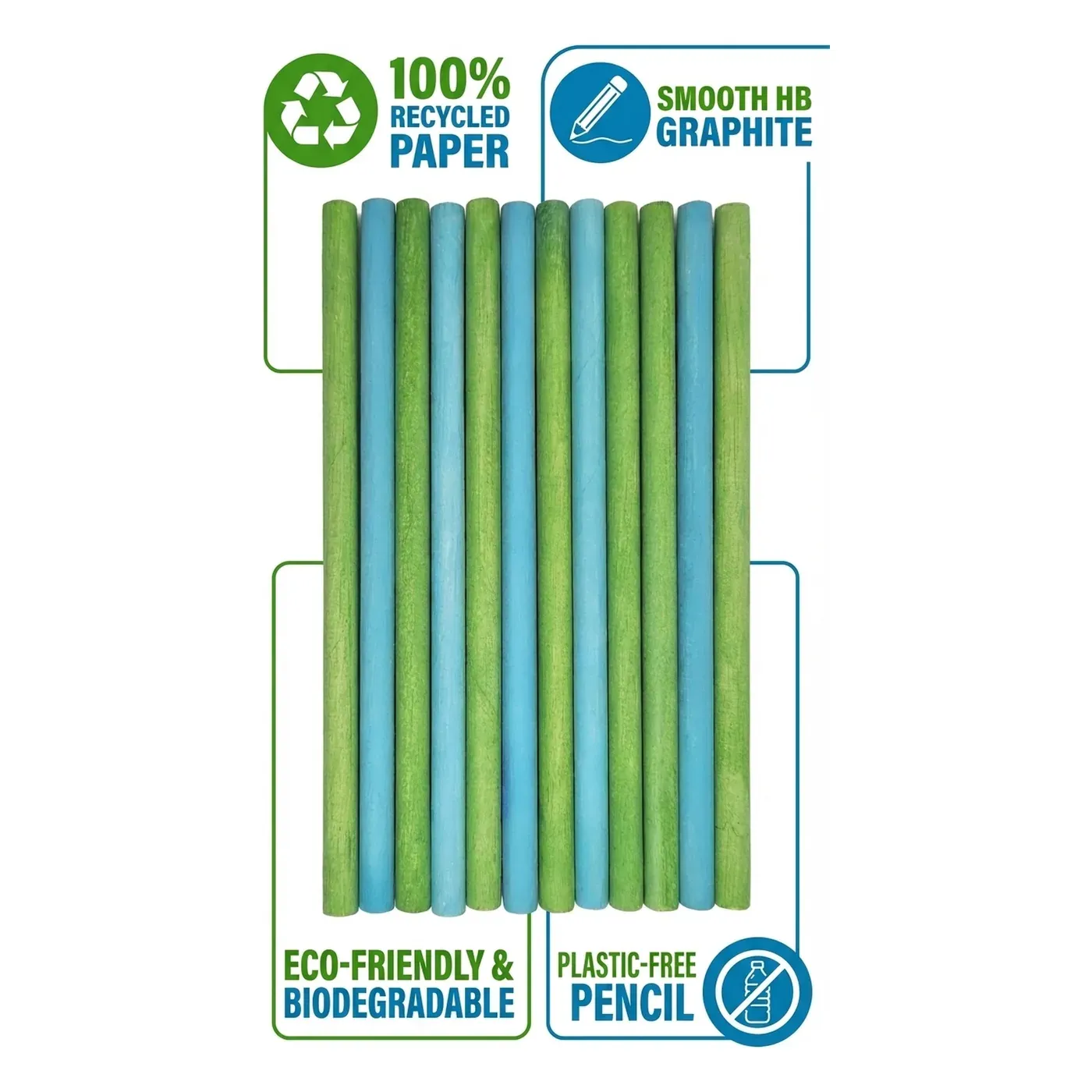 - 100% Recycled Paper: Handcrafted from recycled paper in green and blue. Smooth HB graphite core for everyday writing and sketching.