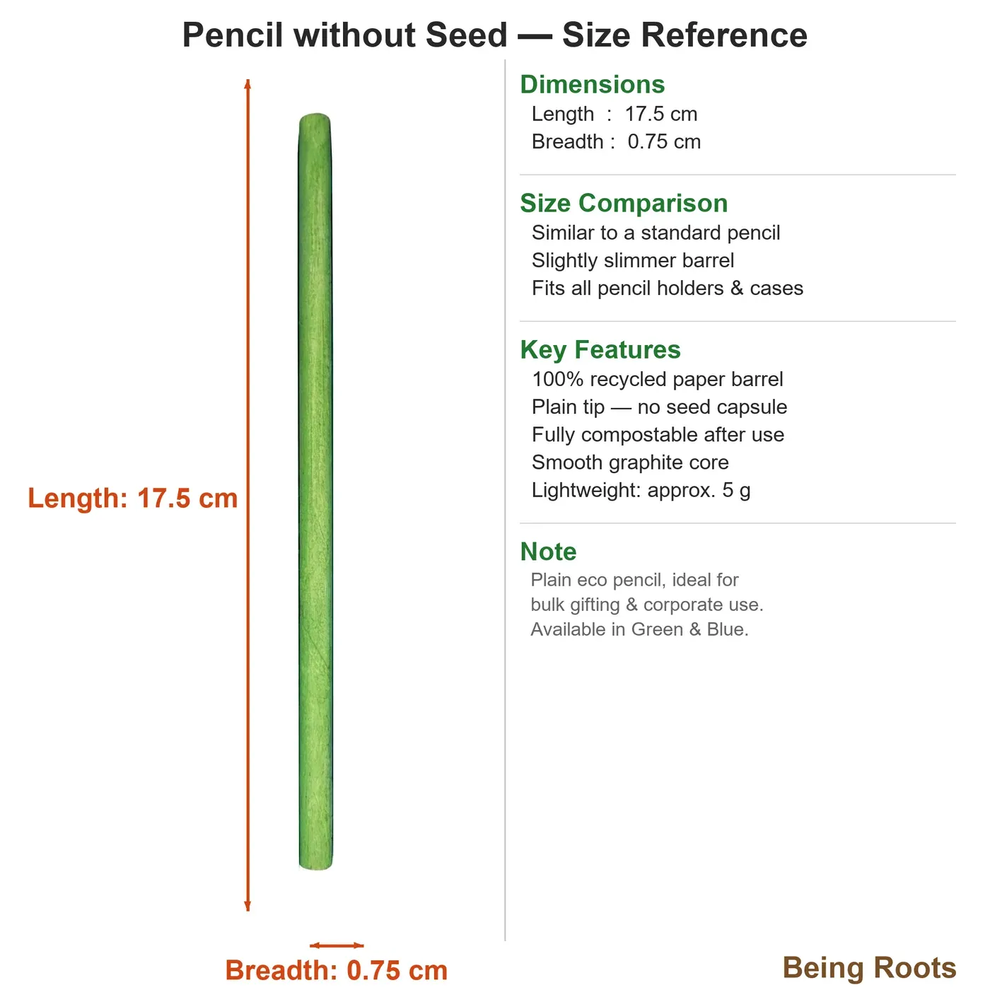 - No Plastic Coating: Fully biodegradable body, unlike painted or coated pencils.